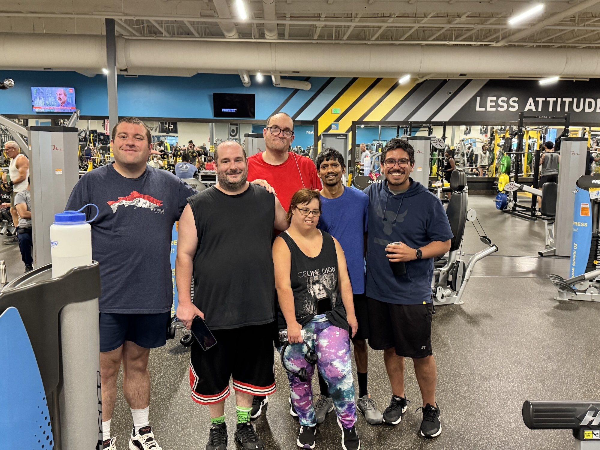 A structured fitness program that begins with group warm-up and routine, then supports participants to use the gym independently and safely.